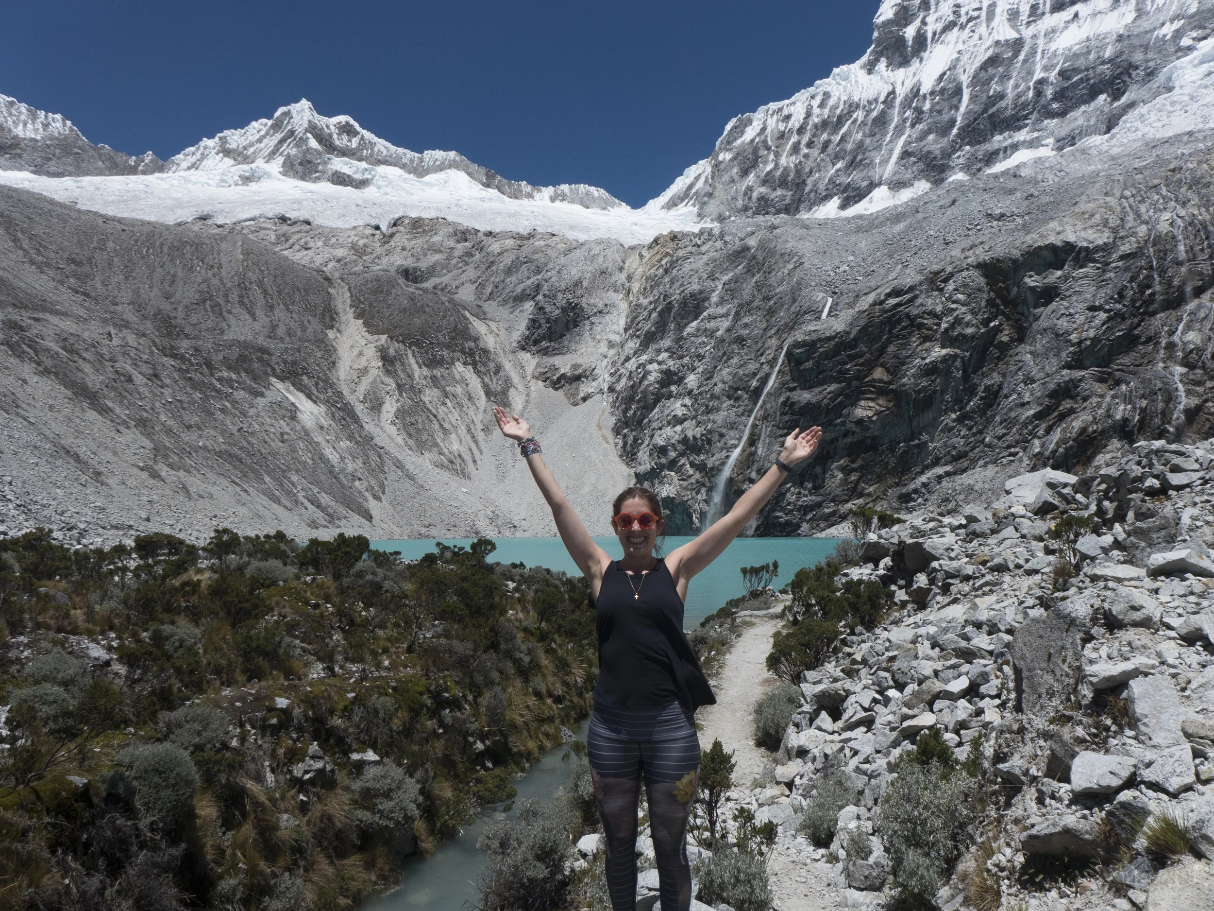 That morning we set off on the Salkantay Trek. We took a taxi to the trailhead but got stuck because of construction. Finally that afternoon, we started hiking in the sunny wilderness. The landscape looked like the board game Catan! Just as the sun was setting, we made it to the 1st campsite beneath snowy mountains. We set up our tents inside insulated huts and bought a hot meal. The next morning we climbed steadily to the summit, Dead Woman's Pass. Dan felt sick so Jenny and him hiked down faster while Pat and I hiked 15 minutes further to a beautiful glacier lake. We caught up with the other 2, ate lunch, and then kept hiking downhill into jungle terrain. We landed at a small campground where we could shower and eat a hot meal.